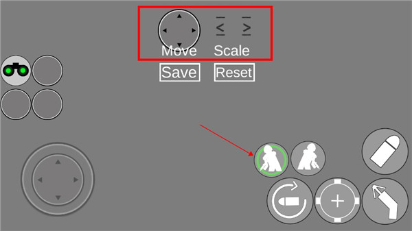 进入后,点击某个操作图标,若该图标显示绿圈即表示已被选中,接着选择上方的按钮就能进行更改;其中轮盘用于控制位置,箭头则用于控制图标大小。