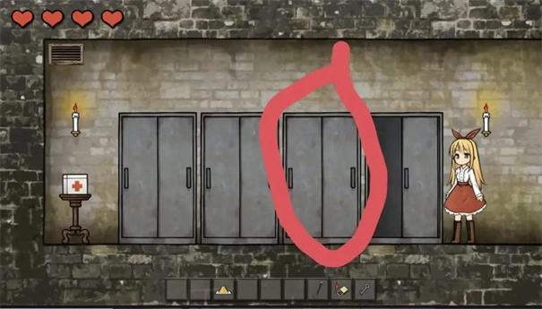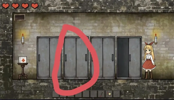 第二个柜子是陷阱柜子打开触发CG,返回存档点。