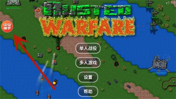 安装好铁锈战争mod大全整合包后,启动游戏,在主界面左上角找到并点击虫虫助手的圆形悬浮窗口。