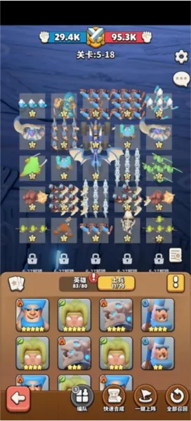 4. 卡牌收集与策略运用:玩家需收集卡牌升级英雄和士兵,并策略性使用卡牌击败对手。