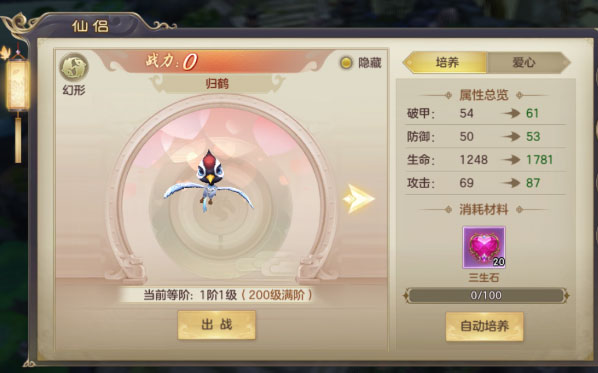 结成仙侣后,玩家将获得一只爱情守护,该守护可召唤参与战斗,培养升级需消耗三生石,并且能通过活动解锁更多外观造型。