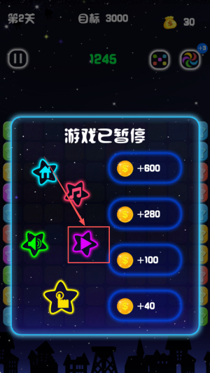 1、熟悉基础操作:熟练掌握点击消除星星的核心玩法,清晰明确“消除指定目标星星、达成关卡设定要求、顺利通过当前关卡”的核心目标。