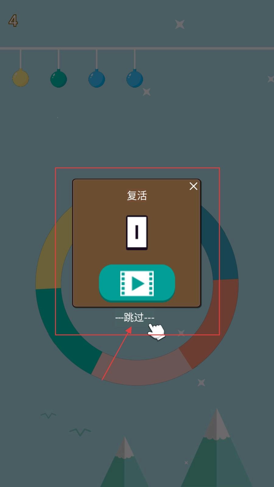 挑战失败后会弹出复活窗口,玩家可以选择复活继续游戏,也能点击跳过按钮重新开始。需要抓住每次机会持续挑战,以此来提高自己的得分。