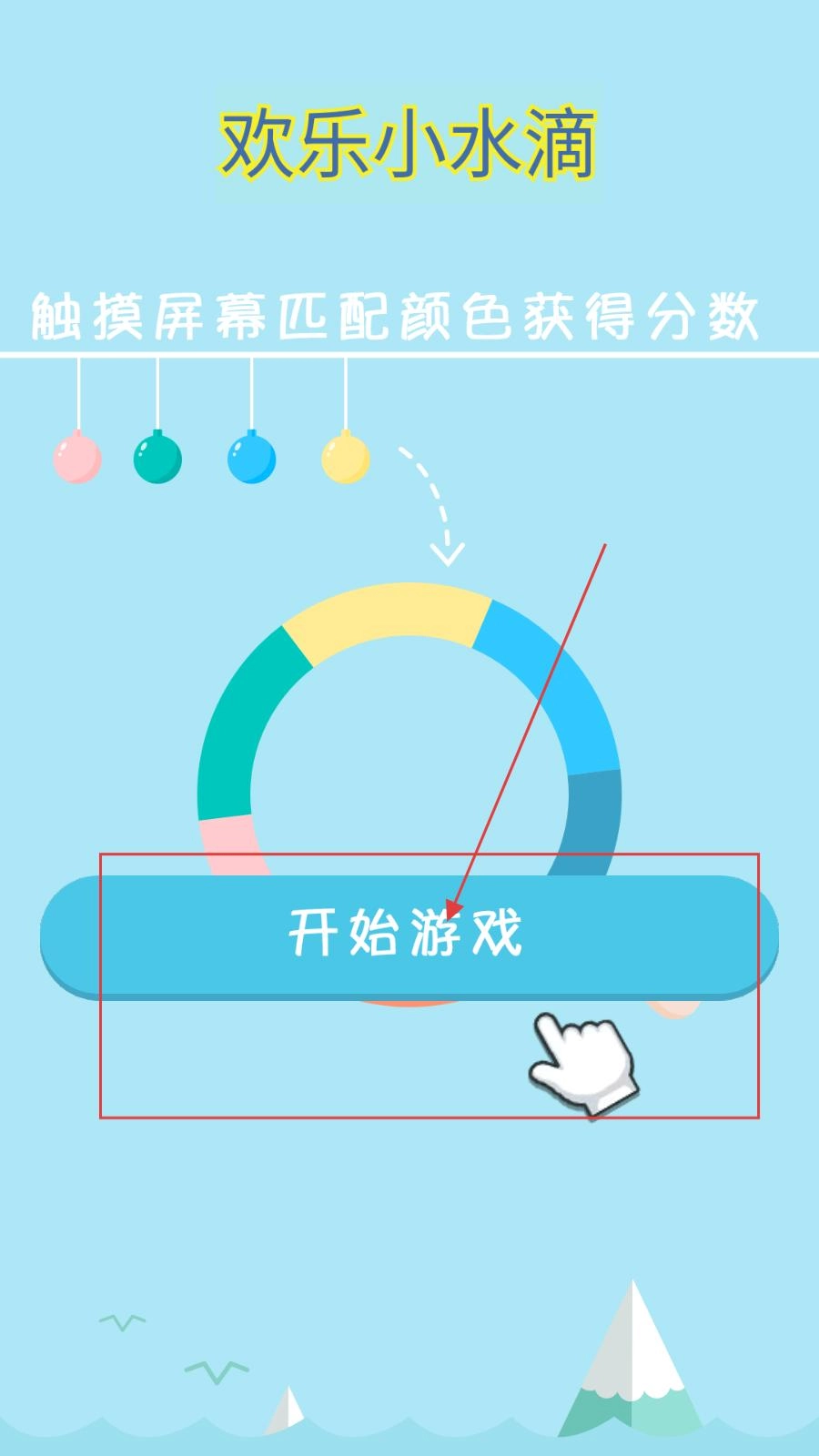 点击“开始游戏”按钮进入关卡后,留意上方的彩色水滴以及圆环的颜色区域。当水滴开始下落时,转动圆环使对应颜色区域与水滴颜色相匹配,即可完成消除并获得分数。