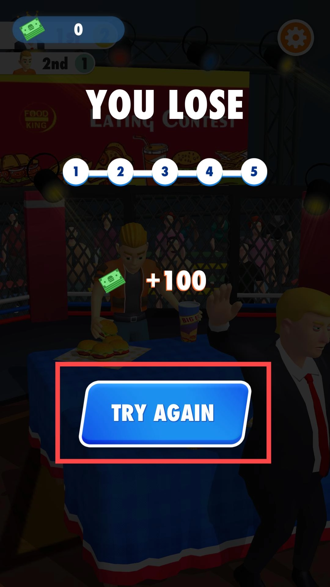 要是失败了,就点击TRY AGAIN重新比赛,借助积累的经验调整好节奏,把加速和饮水的时机分配得当,这样能提高获胜的概率。