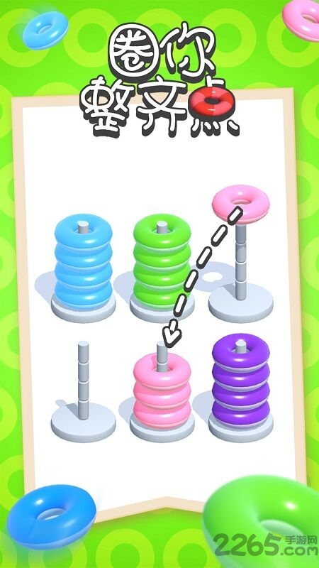 《圈你整齐点》这款游戏的核心目标,是让玩家把所有圆环按照各自的颜色和数字进行分类整理,具体操作就是通过手指移动,把颜色相同的圆环都归置到同一根柱子上。随着关卡不断推进,游戏的难度也会逐步增加,而找到其中的规律,能帮助玩家更高效地完成关卡挑战。