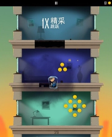《老爸曾是小偷》是一款冒险类游戏,游戏没有设置关卡,每次游玩都是全新的体验。游戏操作简便,只需用一根手指上下滑动,就能操控老爸向上或向下跳跃。
