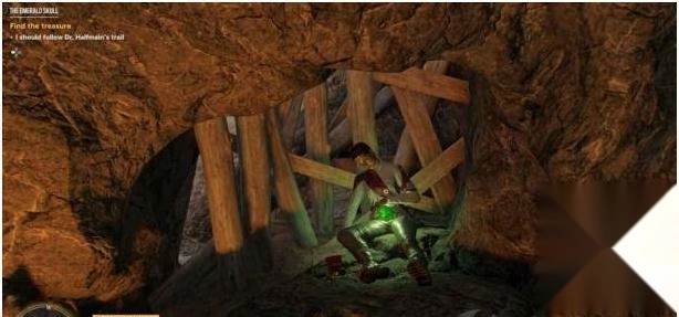 2、穿过洞穴后,您需要通过几个抓握点继续前进。在洞穴的尽头,您会找到一个绿色头骨,拾取它后会触发手榴弹陷阱爆炸,从而炸开一条通路。