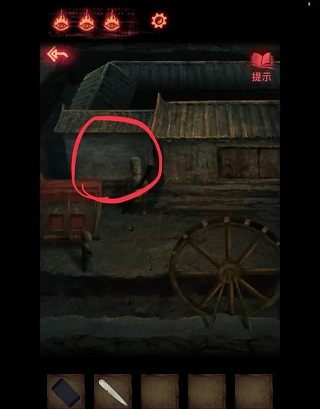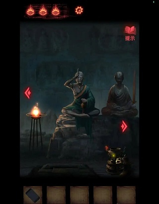 3、去第二个场景老头那里将【蜡烛】点燃(左侧火堆),放到右侧香炉中。(香炉里还差3个物品)