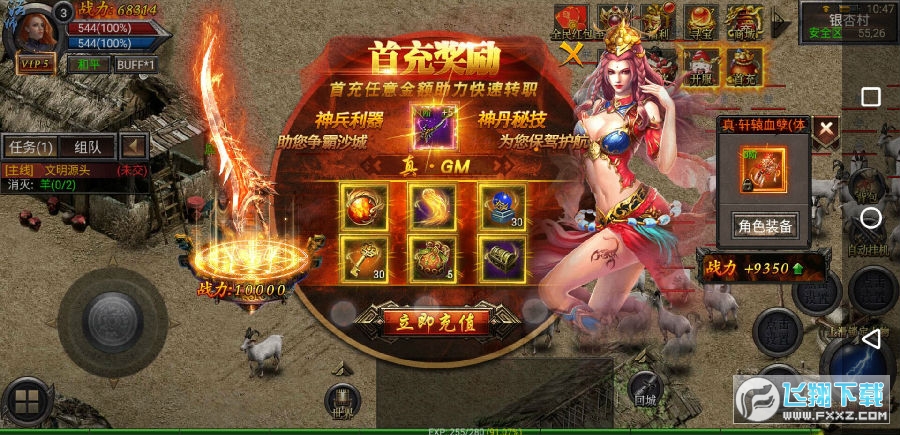 ★首充福利包含绝版GM武器,提前解锁神装横扫战场;更有3转直升丹、高级升级丹助力快速升级,绝对物超所值,让你体验飞速成长的快感!!