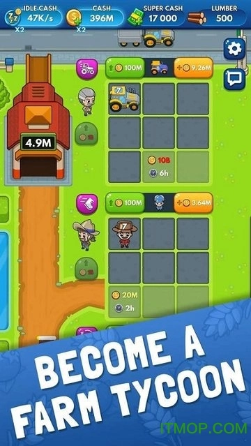 管理众多不同的农场,在你的闲置帝国不断发展壮大的过程中,收获玉米、向日葵、蓝莓等各类作物。