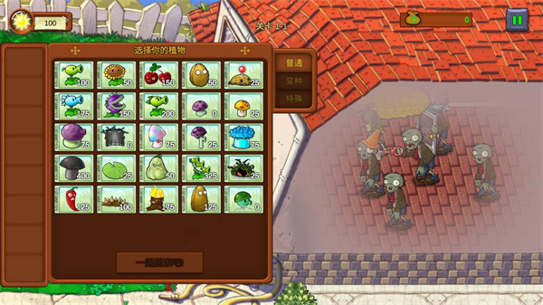 1. 第一步,我们先进入植物大战僵尸重生版的游戏里。在开启游戏前,挑选好自己要用的植物,同时留意出现了哪些僵尸。