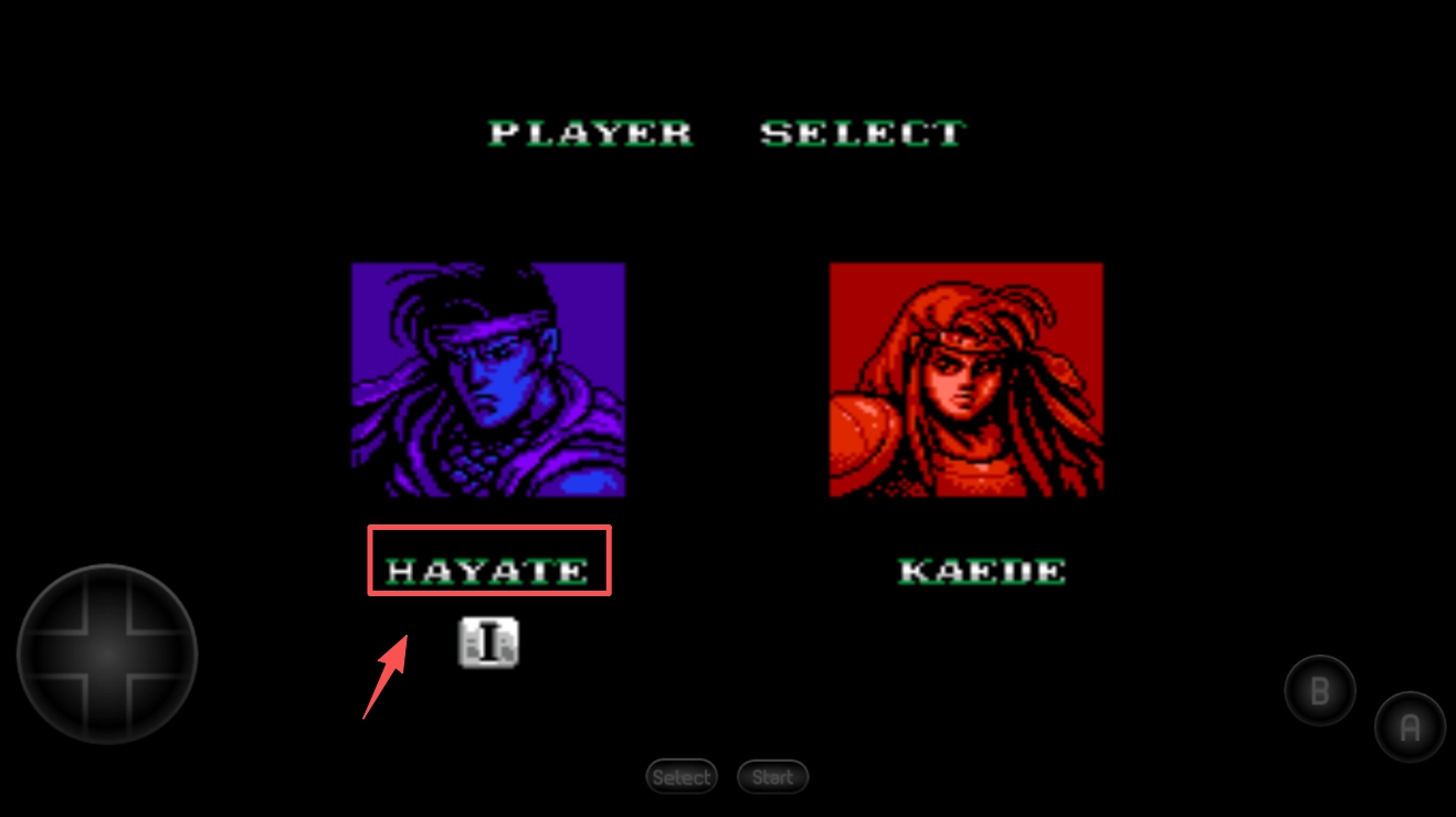 2、进入“PLAYER SELECT”界面后,通过方向键选定角色并完成确认操作。
