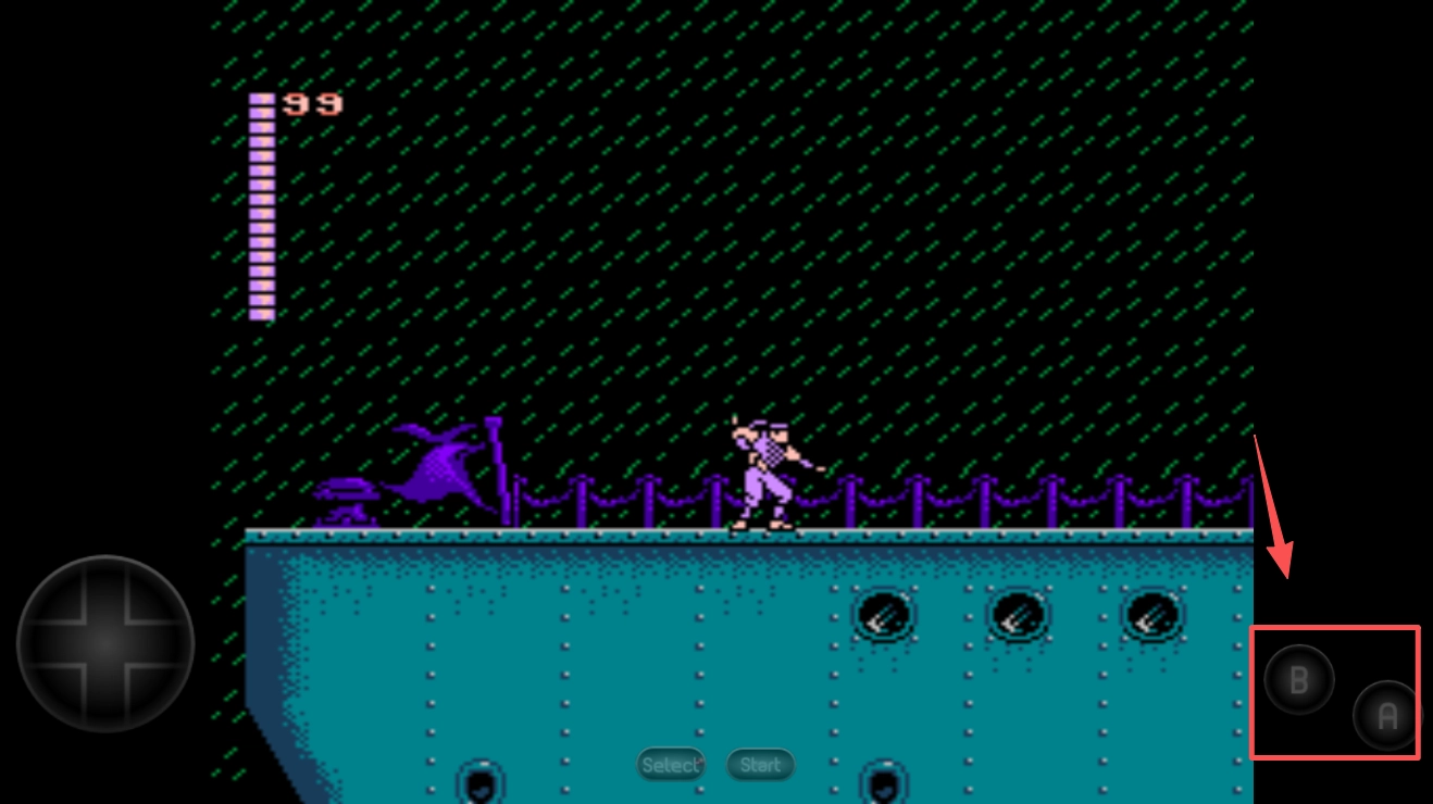 4、按下右侧的“A”键可完成跳跃动作,按下“B”键则能执行攻击操作。