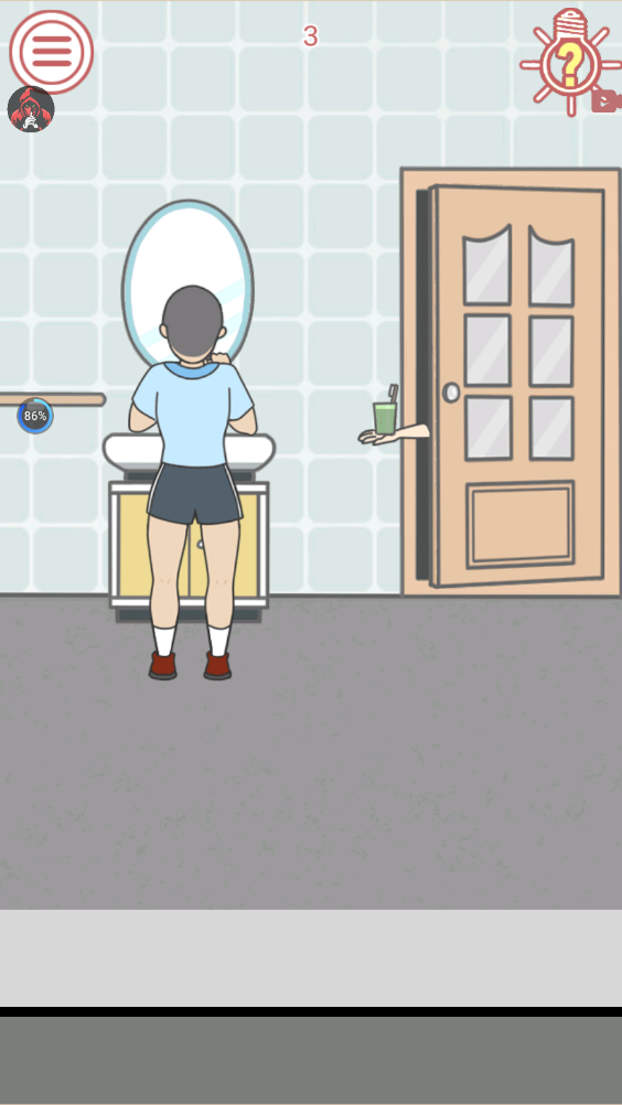 第3关:点击厕所门(点击一次即可),接着点击获取牙杯并递进去,稍等片刻后再点击伸出来的牙杯。
