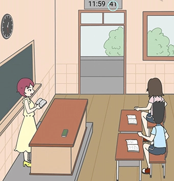 第29关:往左边同学那儿递板砖【自己拿板砖/直接冲上去/点女同学的头发】;