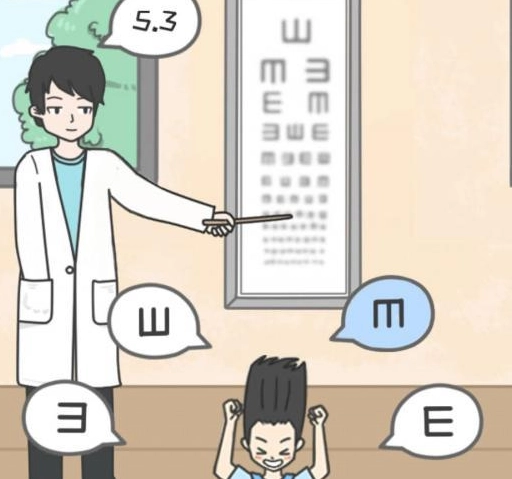 第21关:先点击获取医生的纸笔,接着对着视力表使用纸笔,之后把得到的视力表交给男主,最后点击不同颜色的对话框即可。