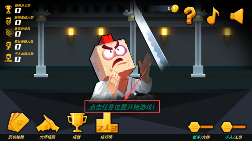 1、玩家操纵角色进行空手接白刃的挑战,依靠简单的操作指令来躲避或接住迎面而来的刀刃。