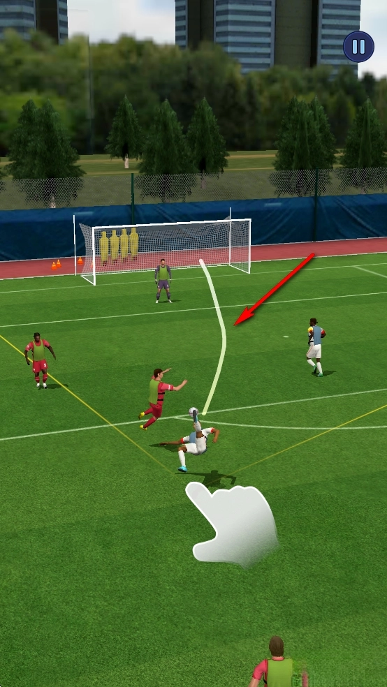 只需从足球所在位置直观地滑动手指,就能完成传球、射门,或是划出弧线踢出漂亮的弧线球,巧妙越过对方球员的防守。