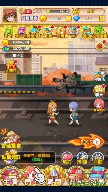 左上角显示着每小时的金币与经验获取量,这个数值和关卡加成直接挂钩。要是你一直不挑战BOSS,就会一直停留在当前关卡,加成自然高不了。所以,想快速提升的话,就得努力增强实力,主动去和BOSS战斗,这样金币和经验的加成就会更明显。