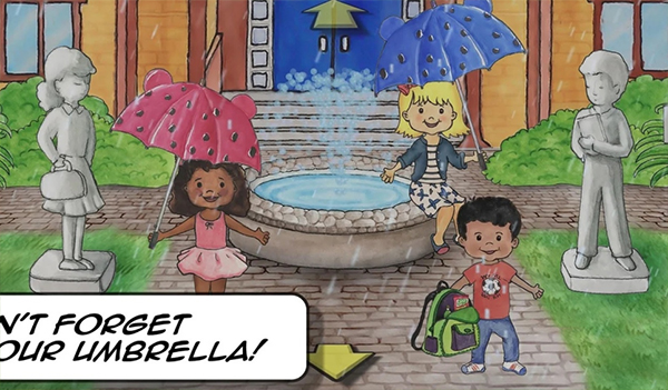 10、超市门口还有一个消防栓,点一下会喷水,放一个人物在喷水的消防栓附近,他浑身也会湿哒哒的。