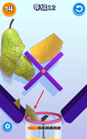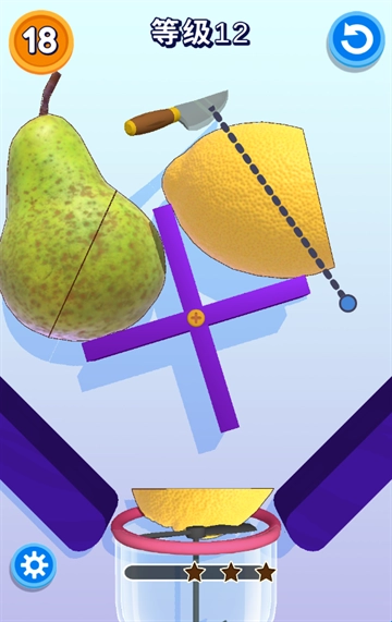 游戏里的关卡难度会一步步提高,会有更多障碍物挡住水果掉进榨汁机,对玩家操作手法的考验也越来越大。