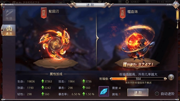 4只有4阶及以上的装备能够开展进阶操作,装备进阶有助于节约进阶石,装备进阶系统(需拥有4阶装备)的入口位于主角界面的锻造板块下的进阶选项中。