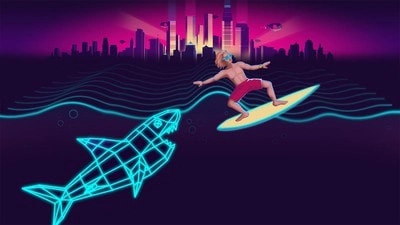 你是从80年代的冲浪者,试图逃跑涡轮鲨鱼。