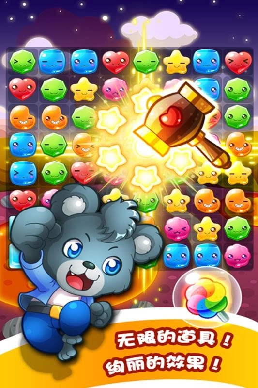 在其中融入了数10种不同的炫目华丽特效,你在挑战中能通过消除触发直线特效、爆炸特效和混合多排消除,还鞥在其中体验全屏爆炸的多重创意组合搭配,拥有激萌的特效音让玩家在获得独特视觉享受的同时感受到超爽的游戏体验,除此以外游戏中还拥有很多有趣的设计在等待玩家挑战。