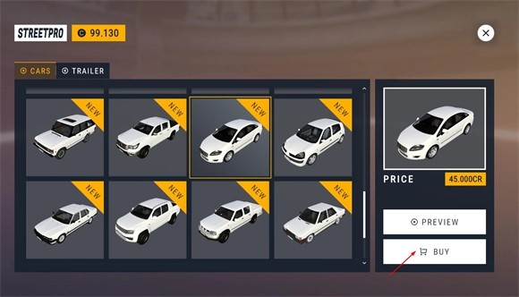 点击你眼缘的车辆,接着选择右下角的“buy”按钮,就能用金币解锁啦。