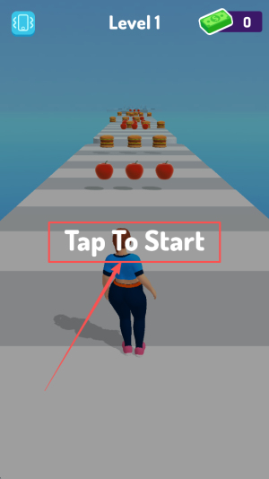 1、开启闯关准备:挑选目标关卡,熟悉对小姐姐的操控方法,知晓苹果(瘦)和汉堡(胖)带来的体重影响,清楚“抵达终点”这一核心目标。