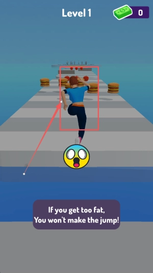 1、围绕“减肥主题 + 跑酷闯关”展开:关键在于“挑选美食、控制体重、躲避障碍、抵达终点”,把减肥的趣味性和跑酷玩法相融合,和常规跑酷游戏形成差异。