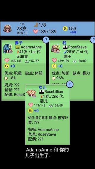 不过游戏并非单纯无节制地生育,玩家需留意配偶与孩子的心理需求:亲生孩子可能因嫌弃居所狭小而离家,配偶也可能因感到待遇不公而移情别恋。因此,玩家不能只专注于生育,一味追求配偶数量与孩子数量,还需对下一代进行合理教育,确保自己的“江山”能有合格的继承者延续下去。