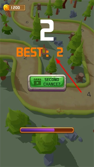 挑战结束后会展示当前关卡的成绩以及历史最佳记录,玩家可以选择观看广告来获取第二次挑战机会,以此提升本次挑战的成绩,甚至刷新最佳记录。
