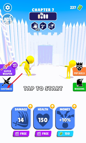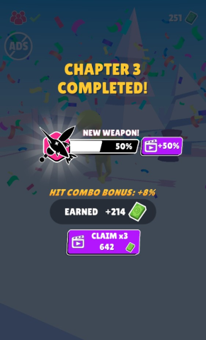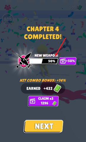 玩家每成功闯过一关,就能积累进度条,离解锁武器更近一步。