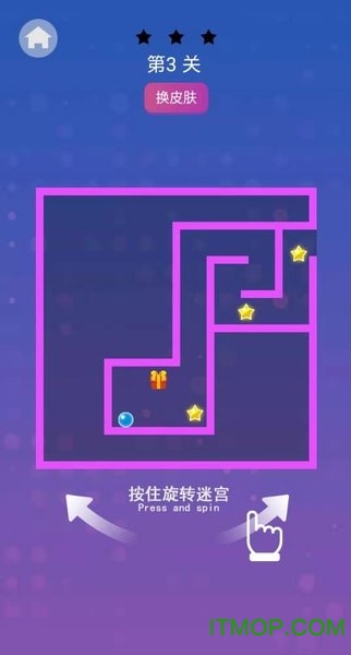 左右滑动屏幕,操控迷宫旋转,收集所有星星,帮助小球成功逃出吧~