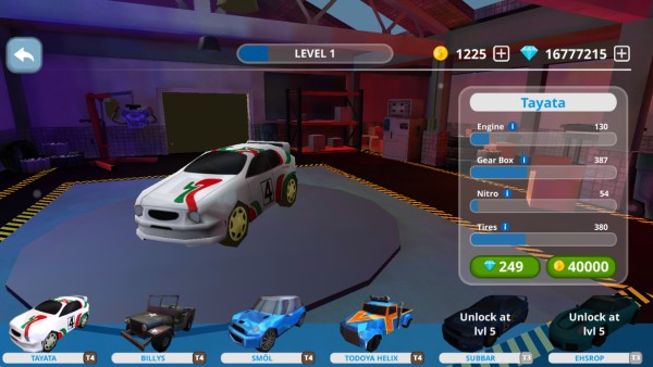 更有多种车库解锁,购买新车,每一辆车的属性都不相同,玩家还可对车辆进行升级改造。