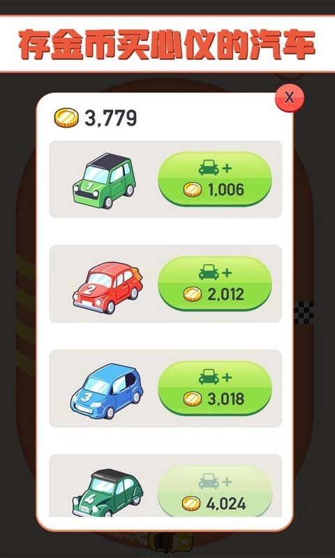 合成好的汽车能够摆放在赛道上,每一辆车都可以获取一定数目的金币,助你轻松积累财富。