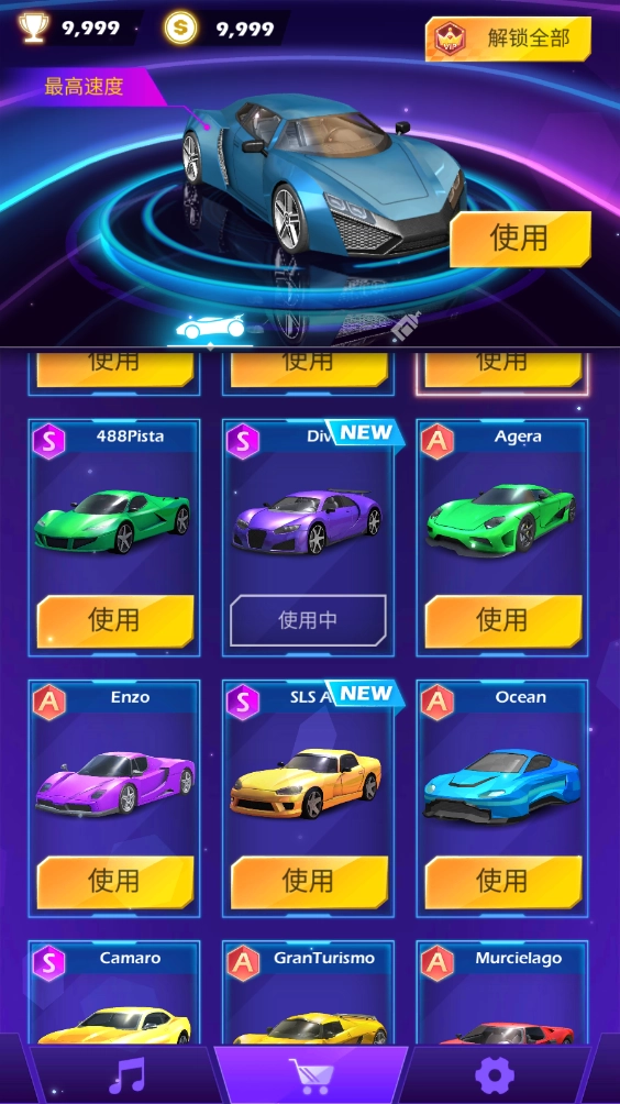 多种汽车可以去解锁使用,每一辆车都非常的炫酷,部分汽车还有特殊的加成哦!