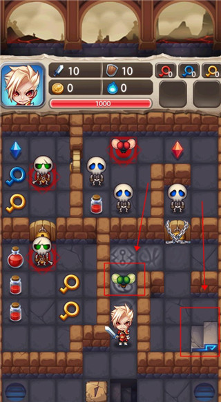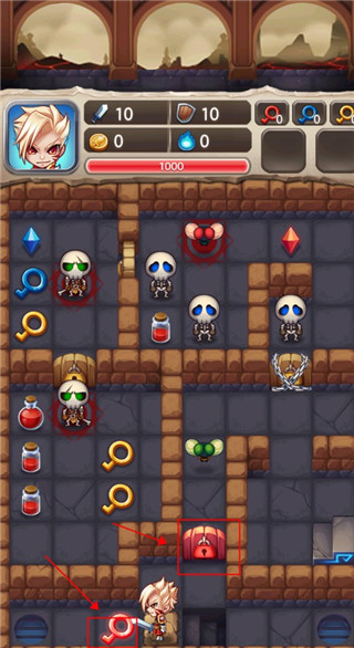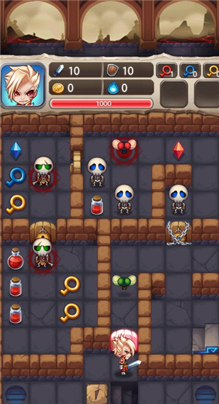 在游戏里,我们完成收集钥匙、挑战关卡的过程中,除了要运用智慧和逻辑推理外,最关键的还是角色的成长环节。玩家需要收集红宝石、蓝宝石来强化角色的攻击与防御能力,收集血瓶来提升生命值上限,通过持续增强各项属性,逐步提高自身的战斗实力。