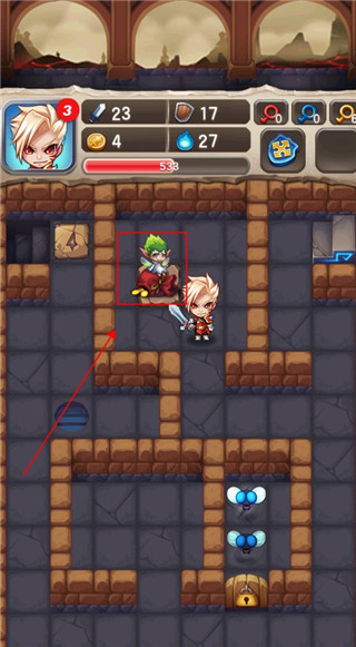 和敌人战斗时血量难免会下降,我们可以在楼层里搜寻红药水来恢复血量