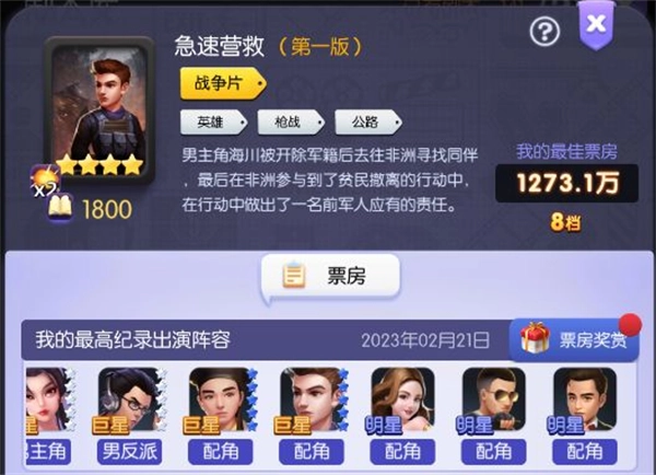 这里有一些评分勉强能达到8分的阵容,大部分的评级都是C。能拿到4星剧本纯粹是运气比较好,差不多一个月左右就能抽到大部分所需的艺人。毕竟前期培养主力艺人,还是得围绕古装、科幻、战争这三个类型来。不然的话,奥斯卡各个阶段的排行奖励就拿不到了。