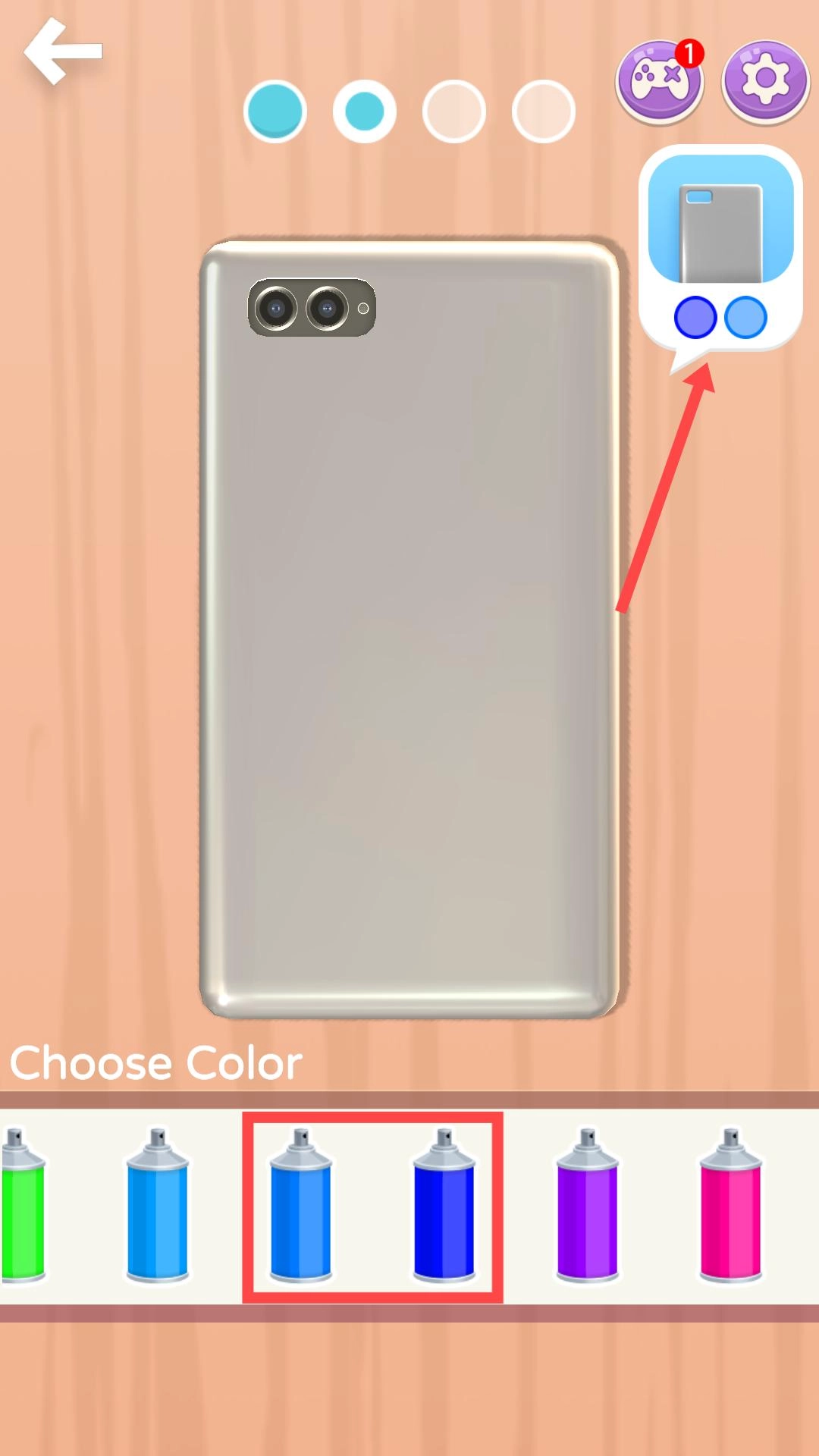 挑选心仪的颜色,点击对应的喷罐,对照右上角的颜色示例,打造属于自己的独特外观,完成个性化的装饰。
