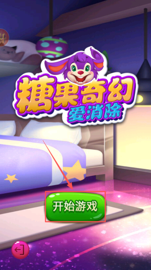 1、进入游戏:在糖果奇幻爱消除开始游戏界面点击开始游戏。
