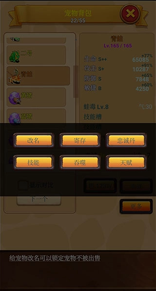 修改名字,物品寄存,忠诚丹(当宠物忠诚度为0时,将无法参与战斗)