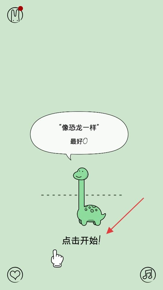 点击【开始】按钮进入游戏,尽快熟悉点击操作的方式,通过操控恐龙头部来避开随机生成的障碍物,力求维持生存状态。