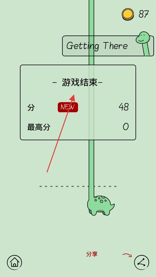 收集成长机制:成功获取的脖子会让恐龙颈部永久变长,每收集10个脖子就会触发阶段性变身,造型会变得愈发夸张有趣,最长能达到屏幕高度的2倍。