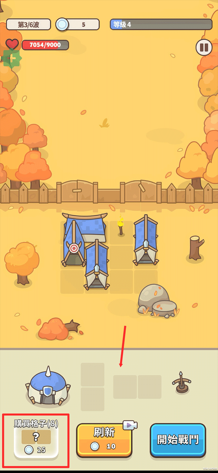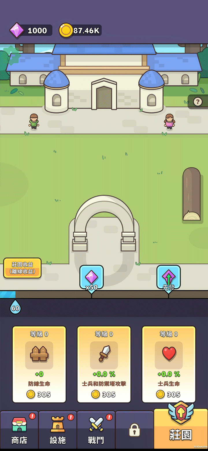 游戏中你可以利用合成与升级系统强化防御能力。升级系统不仅可以增强士兵属性,还能提升城堡防御,形成策略与成长的双重循环。