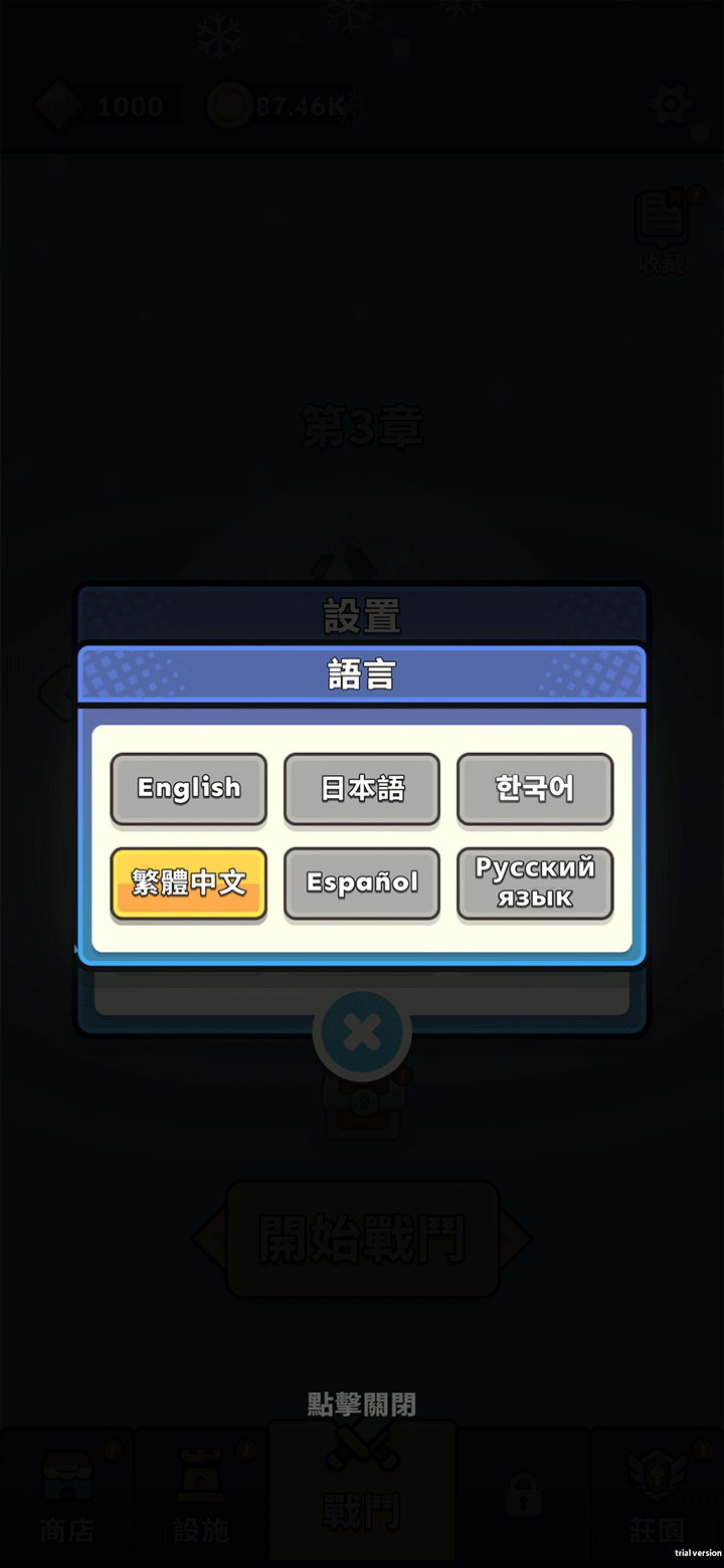 1、进入游戏后,首先点击右上角的“设置”图标,将语言切换为中文。