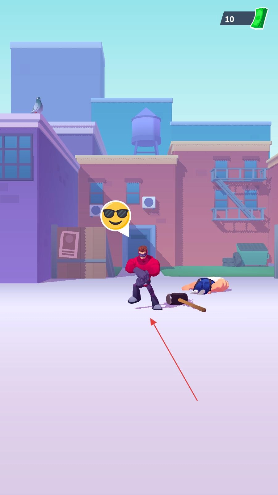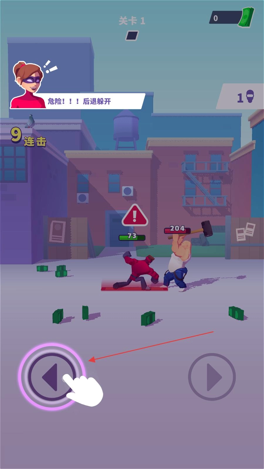 当战斗里遇到拿锤子的敌人时,按照提示点击左边的后退按钮,迅速后退避开敌人的攻击,确保自己的安全。
